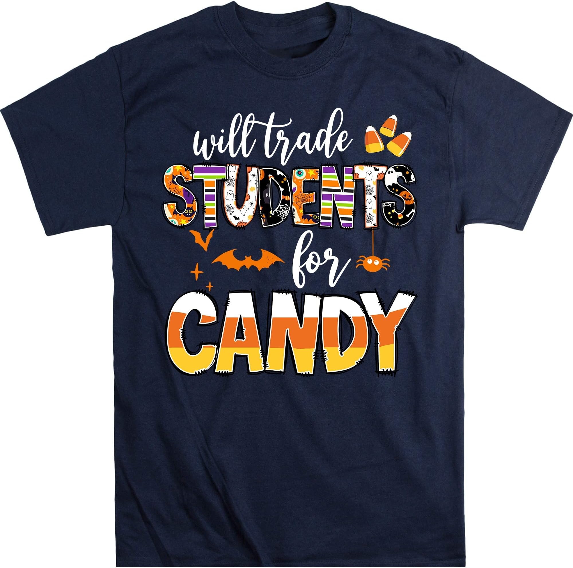 Will Trade Students for Candy Shirt, Teacher Halloween Shirts, Halloween Teacher Gift, Kindergarten Teacher Shirt – Navy X-Large