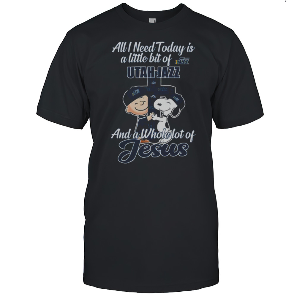 2025 Snoopy And Charlie Brown All I Need Today Is A Little Bit Of Utah Jazz And A Whole Lot Of Jesus T-shirt