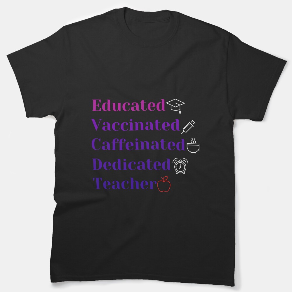 Educated, Vaccinated, Caffeinated, Dedicated, Teacher Classic T-Shirt